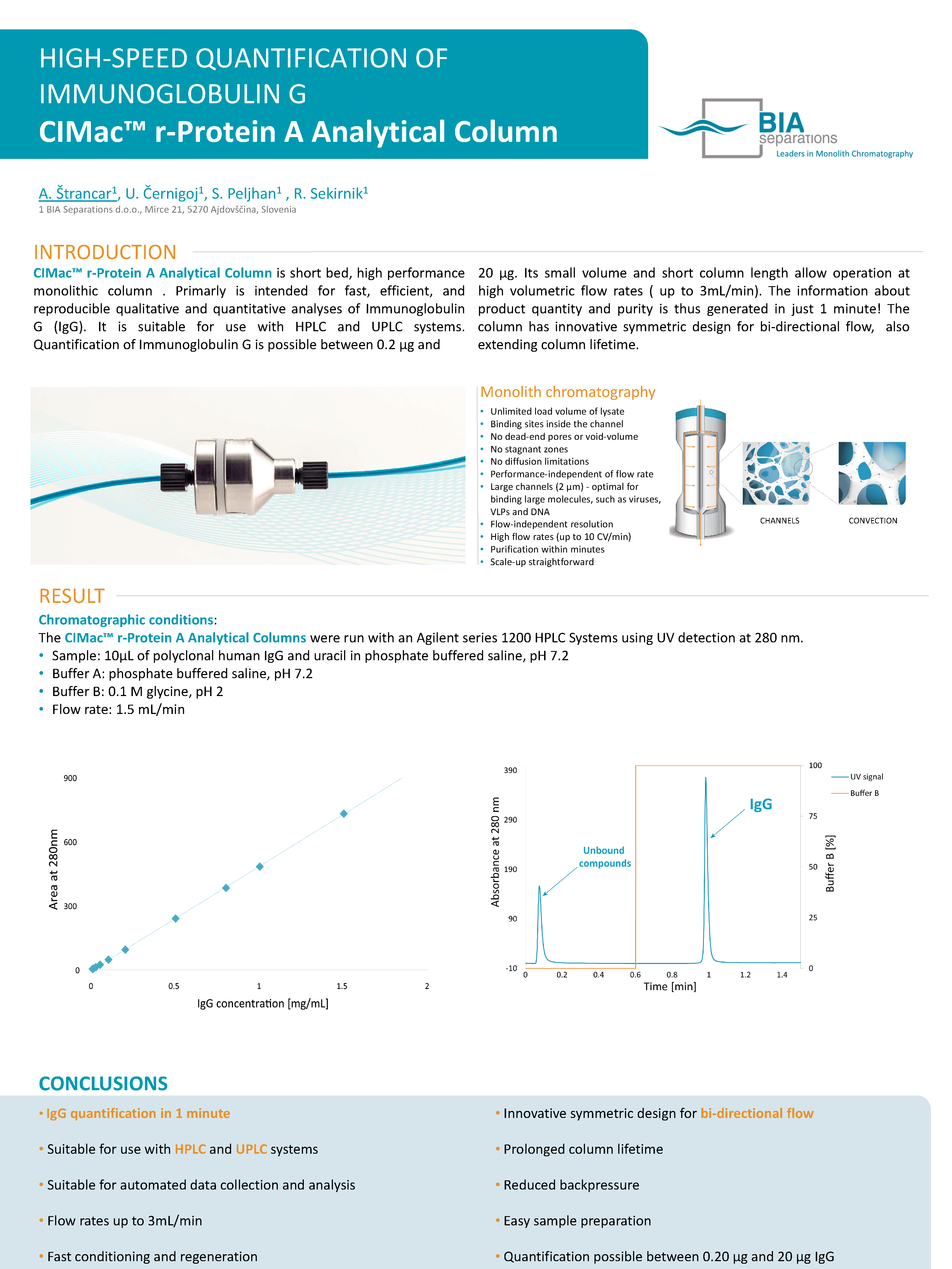 High-Speed Quantification of Immunoglobulin G – CIMac r-Protein A Analytical Column
