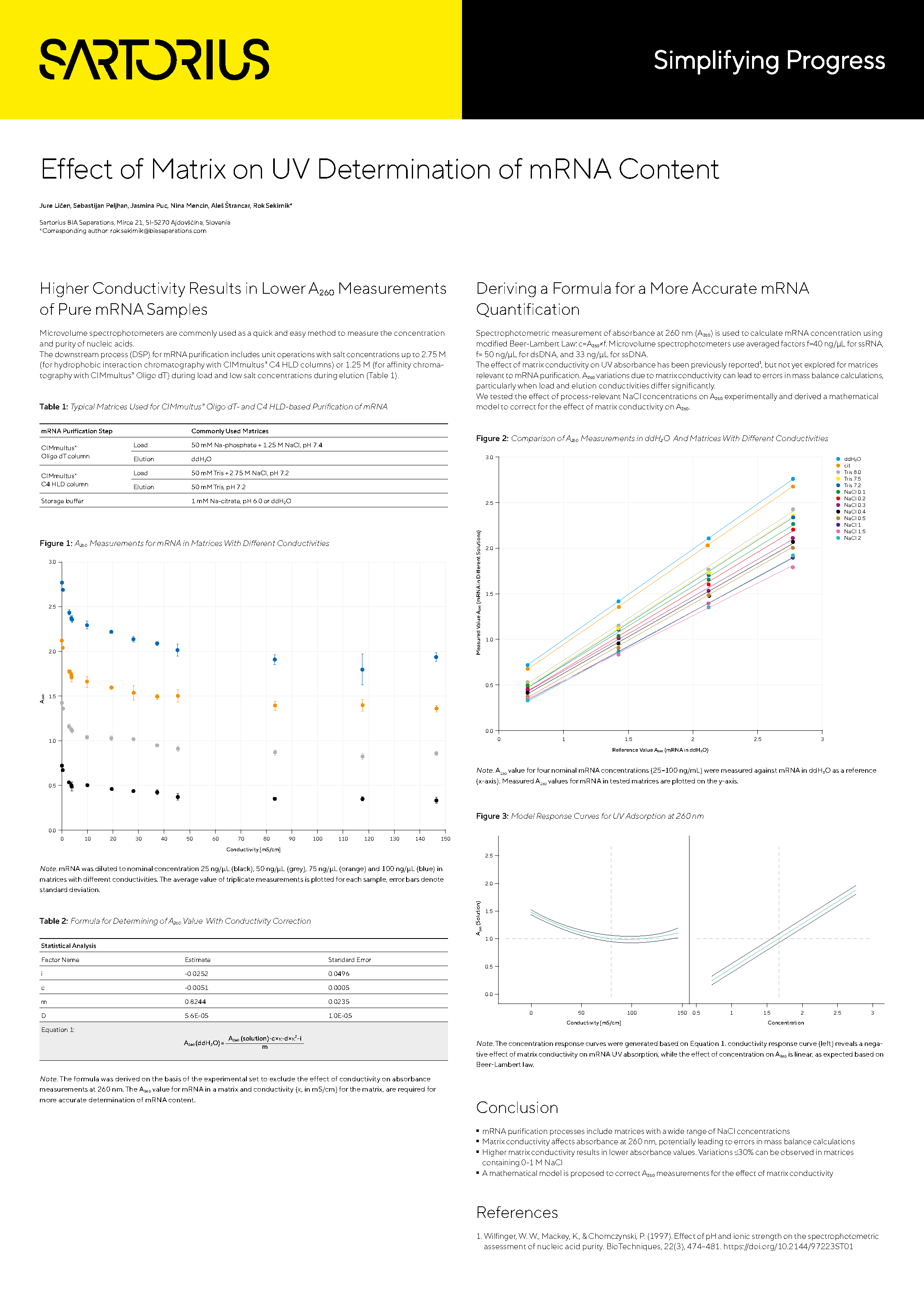 Microvolume spectrophotometers are commonly used as quick and easy method to measure concentration and purity of nucleic acids. DSP process for purification of mRNA includes unit operations with salt concentrations up to 2.75 M (HIC) or up to 1.25 M (Oligo dT) during load and low salt concentrations during elution.