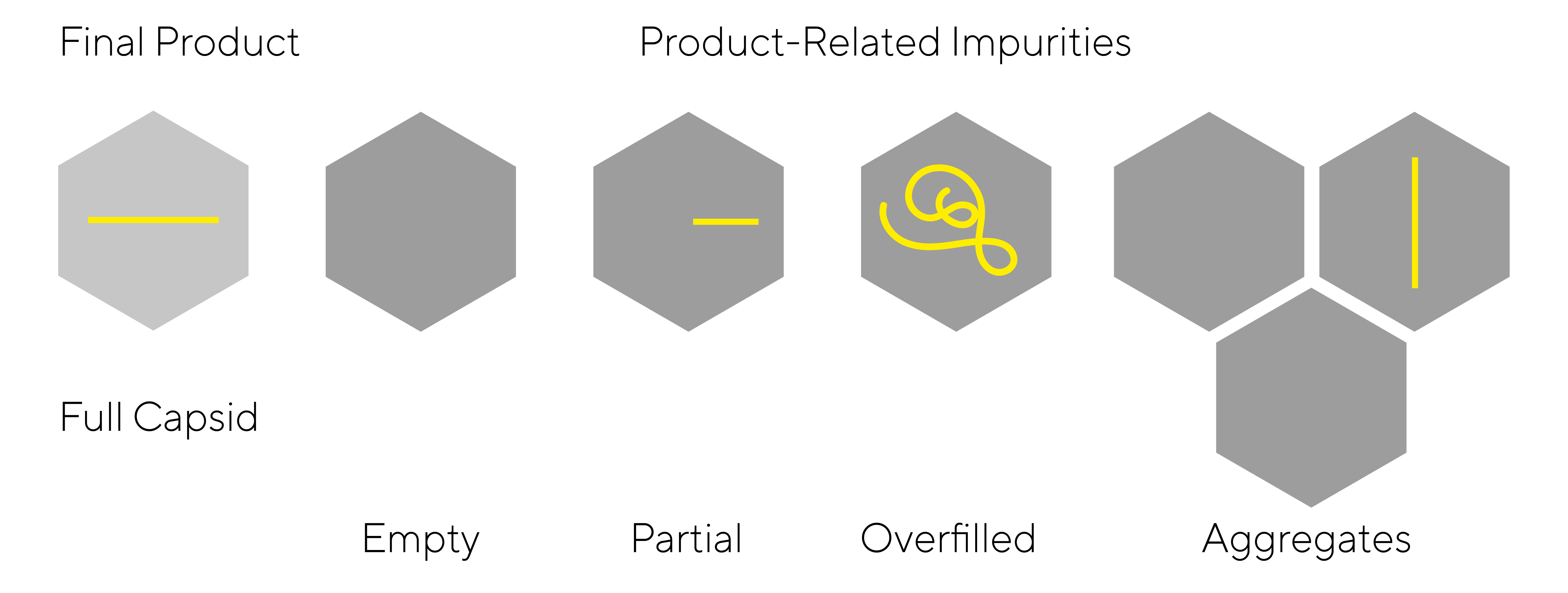 The enhanced AEX chromatographic method achieves baseline separation between empty and full capsids, which together with mass photometry facilitates the detection of AAV subpopulations. The heterogeneity of AAV samples is further uncovered with aggregate and impurity tracking.
